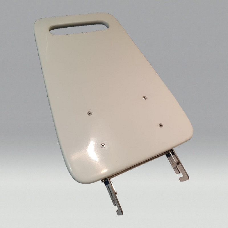 Schienale per sedia da combattimento realizzato in vetroresina bianca e con un kit di fissaggio in acciaio inox 316L lucidato manualmente a specchio.