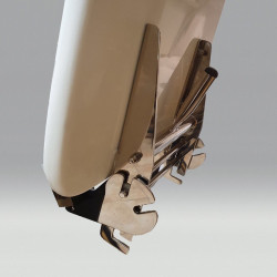 Kit composto da poggiapiedi in vetroresina bianca e supporto in acciaio inox 316L lucidato manualmente a specchio. Accessorio per la nostra sedia da prua art.172.
